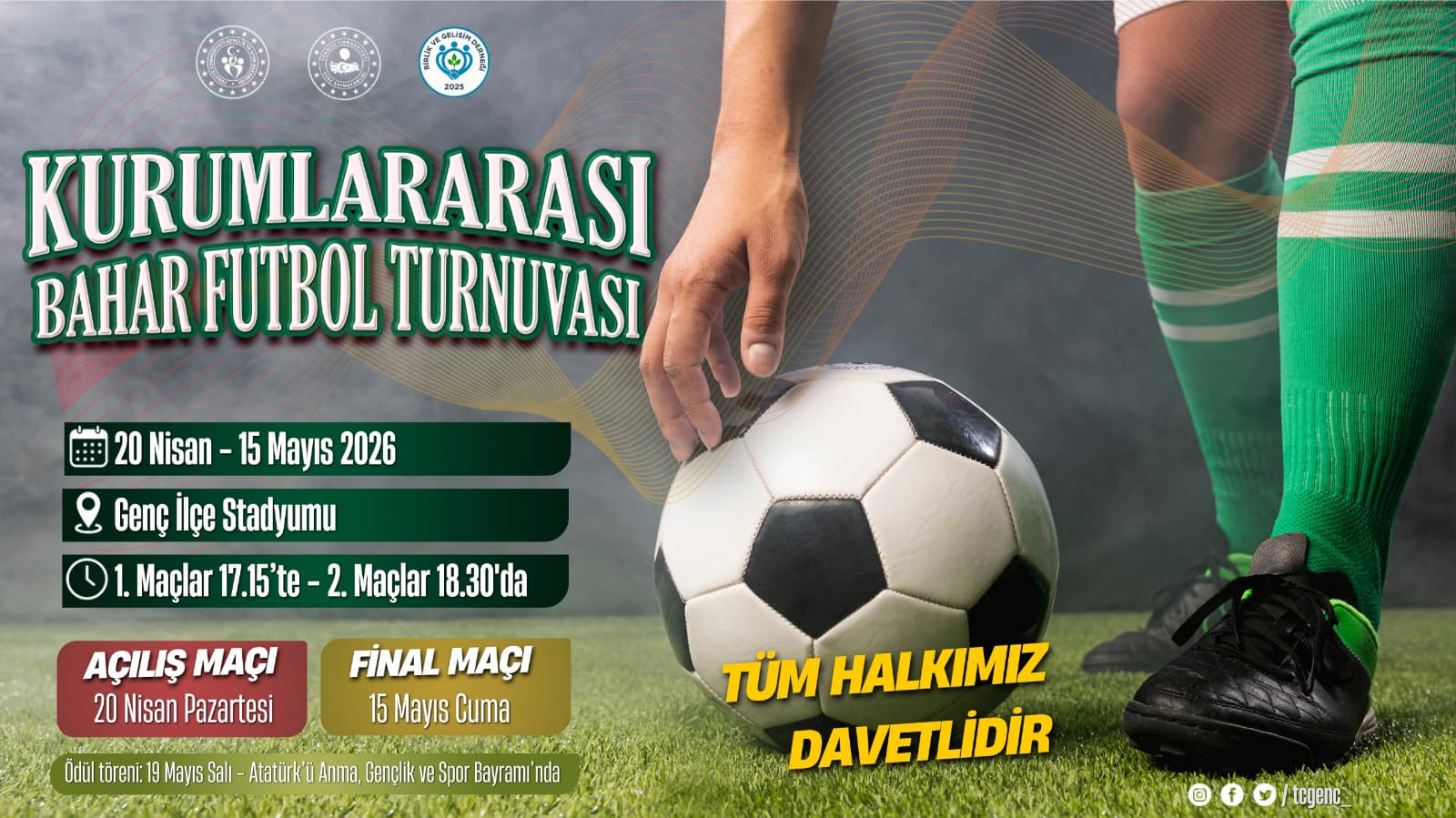 Birlik ve Gelişim Derneği, Genç Kaymakamlığı ve Gençlik ve Spor İlçe Müdürlüğü iş birliğiyle organize edilen turnuva, ilçede sporun birleştirici gücünü ortaya koymayı hedefliyor. Organizasyon kapsamında kamu kurumlarında görev yapan personelin oluşturduğu takımlar sahaya çıkacak.